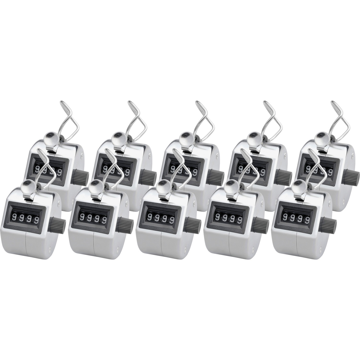Tally counter offers a four-figure register, finger ring to hold it comfortably and automatic reset button. White numbers are easy to see on a black background. Steel tally counter is chrome-plated and precision-engineered. Register ranges from 0000 to 9999.